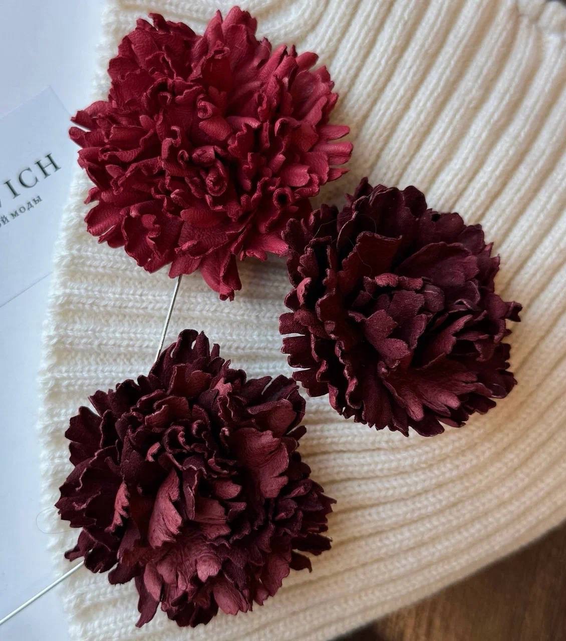 Изделие выполнено из натуральной кожи, оснащено удобным креплением, которое легко фиксируется и не повреждает одежду. Гвоздику можно носить с собой и надевать по настроению — как небольшой акцент, который меняет весь образ.
