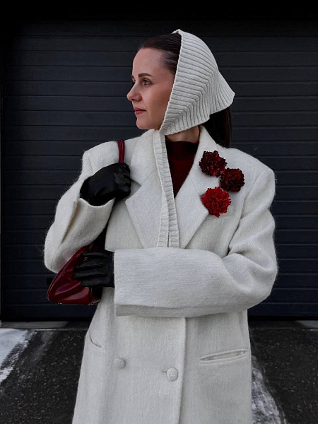 Отдельный приём — носить сразу несколько гвоздик, создавая сет. Такая композиция выглядит современно и актуально, добавляя образу динамику и индивидуальность. При этом цветок также самодостаточен и в одиночном варианте.