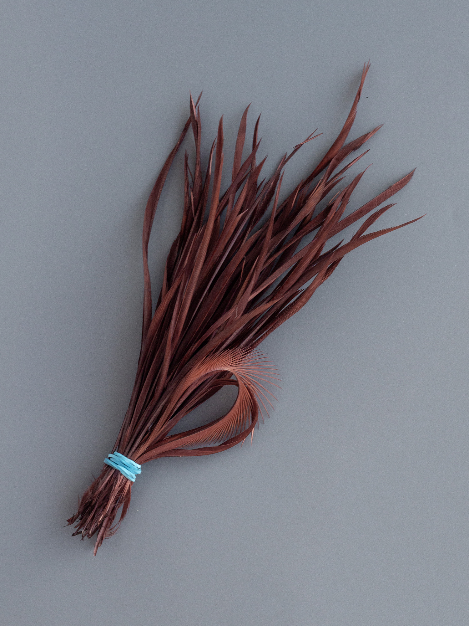 Перья гусиные окрашенные, длиной 12-18 см. Представляют собой половинку пера, за счёт чего их можно согнуть в кольцо, получив необычный и удивительный эффект "лучиков", который можно использовать для создания одуванчиков и просто различных акцентов в создании цветов.