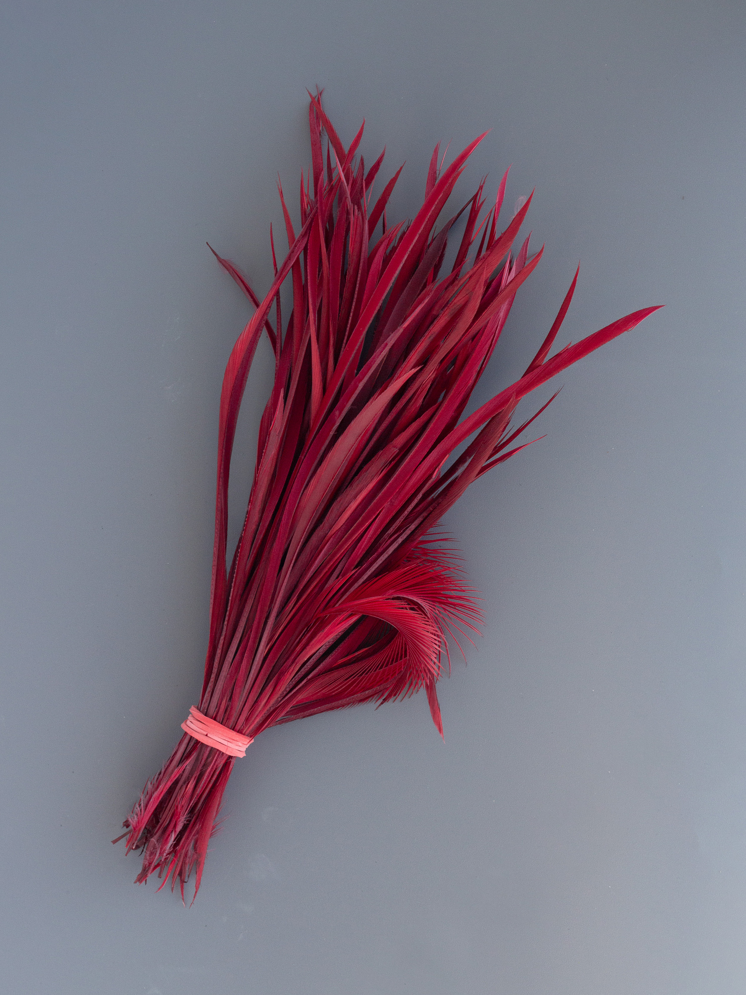 Перья гусиные окрашенные, длиной 12-18 см. Представляют собой половинку пера, за счёт чего их можно согнуть в кольцо, получив необычный и удивительный эффект "лучиков", который можно использовать для создания одуванчиков и просто различных акцентов в создании цветов.