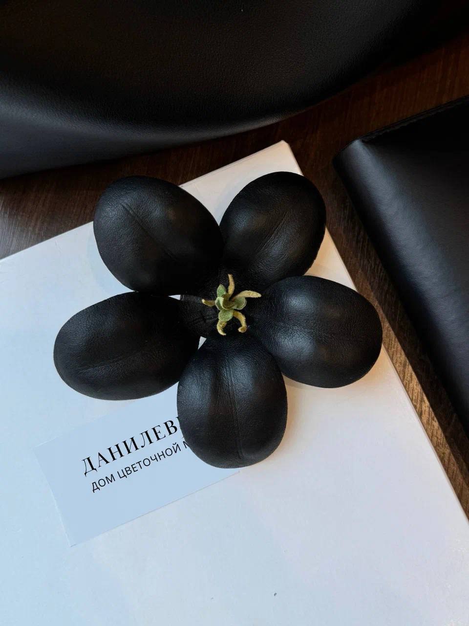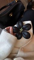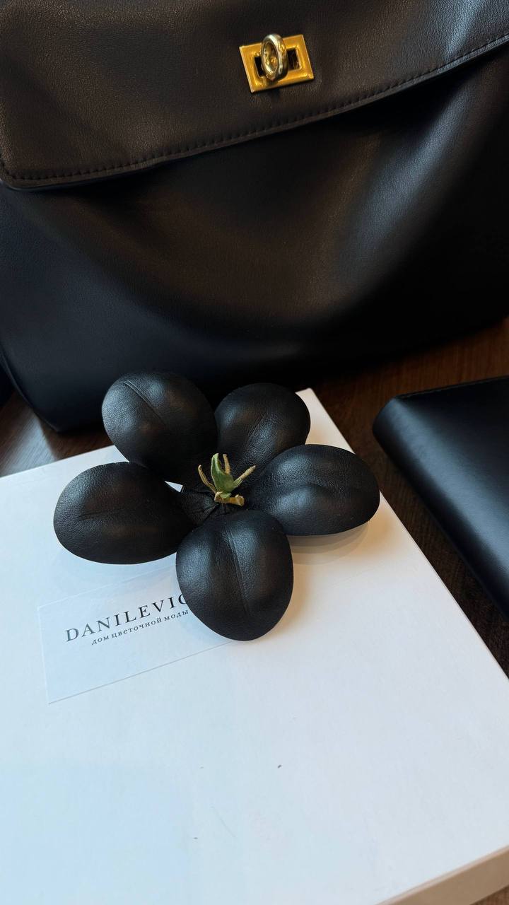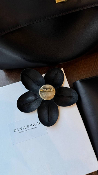 Технически сложное исполнение пятилисткового цветка, который держится на плоскости благодаря уникальной конструкции, делает его настоящей дизайнерской находкой. Это эксклюзивный элемент ручной работы, созданный с вниманием к каждой детали, способный стать центральным акцентом вашего образа.